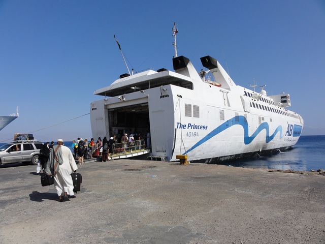 搭了快三個小時的船後抵達了約旦Aqaba