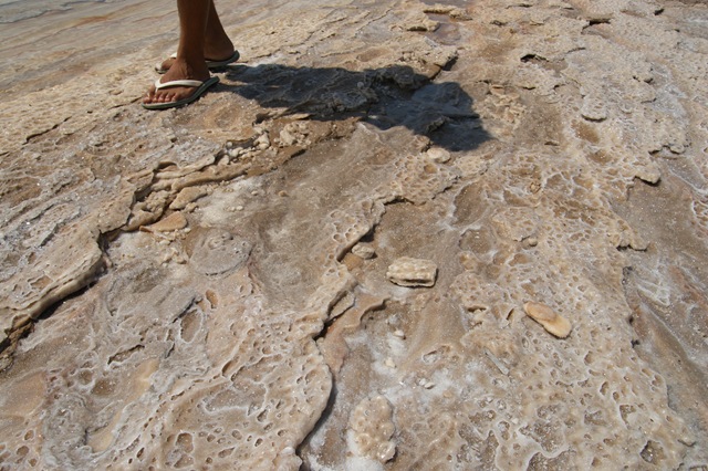 沒想到一不小心我整隻腳陷入了岸邊的死海泥中