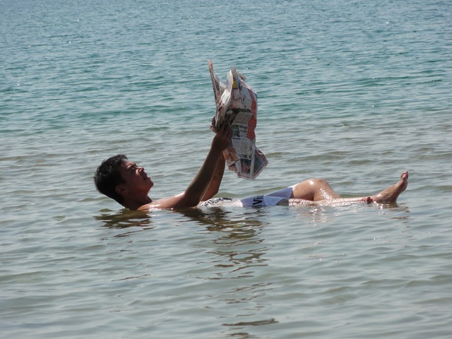 來拍著名的漂浮在死海上看報紙照片XD