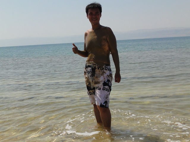 在死海漂浮的玩耍了兩個小時後