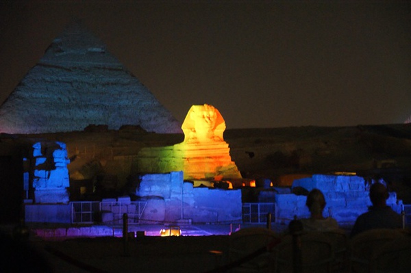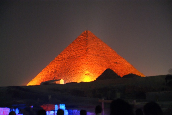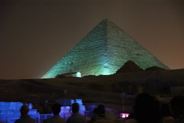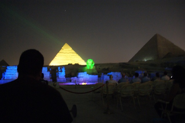 燈光雷射光開始打在金字塔跟人面獅身像上