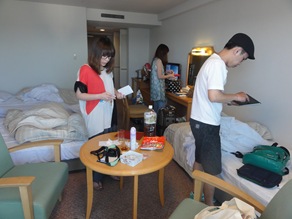 確定沒問題順利偷溜到飯店為我們準備的和室裡面等待