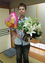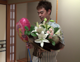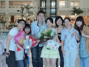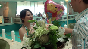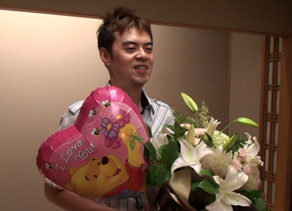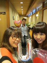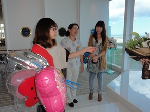 大家分別拿著代表著I Love U 跟維尼的氣球以及香水百合
