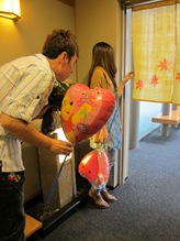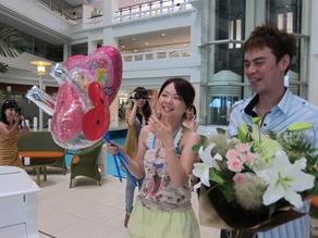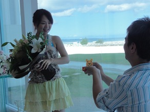 而熱心的高橋小姐幫我們把佈置的維尼拿來並確認求婚是否成功XD