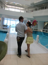 接下來就牽著Ivy走過水上步道進入水教堂啦!