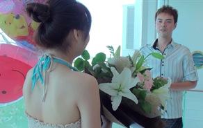 先將千辛萬苦為Ivy準備的香水百合交到她的手上