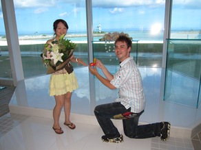 我也立刻單膝下跪詢問Ivy:妳願意把妳的下半輩子託付給我,嫁給我嗎?